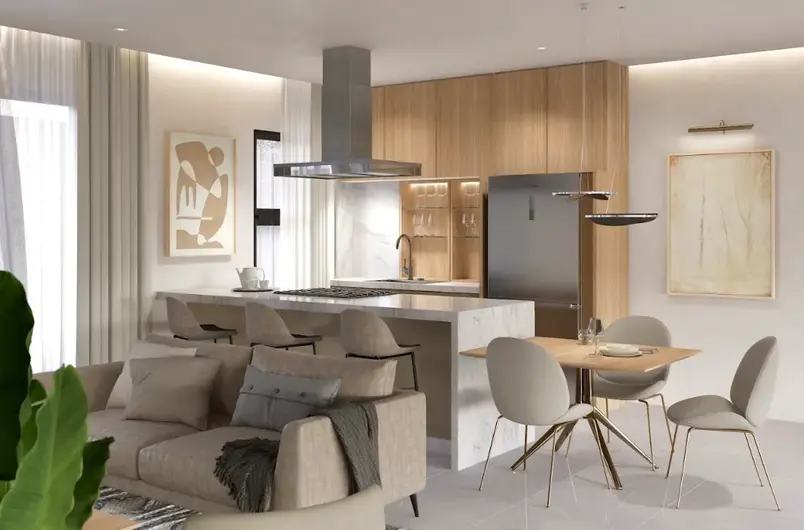 Cada bloque cuenta con cuatro niveles de apartamentos de 1 y 2 habitaciones, que se caracterizan por su contacto con el exterior, iluminación natural y ventilación cruzada, además de una muy funcional distribución interior y amplios balcones con vistas privilegiadas al área común y al hermoso paisaje que posee la zona. También contará con línea blanca, las cuales serán: nevera, estufa, extractor, aires acondicionados tipo Split y lavadora/secadora.